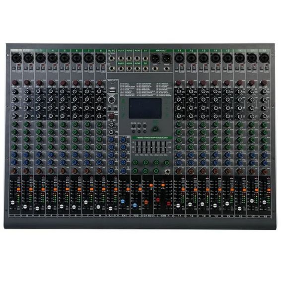 Console professionale a 18 canali progettata per performance dal vivo, studi di registrazione, installazioni fisse e broadcast. Include un doppio processore effetti DSP, equalizzatore grafico stereo a 7 bande, display multifunzione LCD e connettività completa (Bluetooth, USB, AUX, SEND/RETURN). Ogni canale è dotato di controlli dettagliati per una gestione audio avanzata, mentre l’interfaccia intuitiva consente un workflow fluido anche in ambienti complessi.