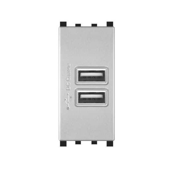 Alimentatore doppia presa USB 90-265V output 5V 2A grigio compatibile Vimar Plana