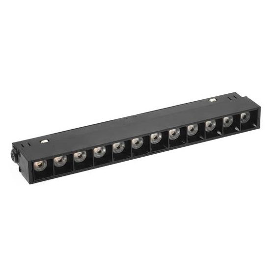 ILLUMINAZIONE A BINARIO serie MAGNA con corpo in alluminio e prestazioni di illuminazione di 984 Lm e una lunga durata di 25.000 ore. Questo modello da 12 W include LED da 4000 K (BIANCO NATURALE) con un angolo di illuminazione di 36°.