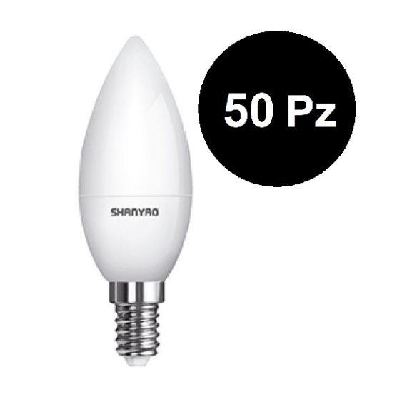 50 Pezzi - Lampada LED C37 5W attacco E14 candela - luce calda - SERIE LUNA