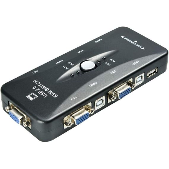 - Controlla 4 PC su 1 monitor: KVM Switch Box 4 porte consente di collegare tastiera USB, mouse USB e monitor a 4 PC, controllabili facilmente tramite il pulsante sulla parte superiore. È compatibile con 98/98SE/2000/ME/NT/XP/VISTA/XP 64bit/Vista 64bit/Win 7/Netware/Unix/Linux/Mac