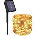 Striscia LED luce calda in filo di rame 10m 100 led con pannello solare