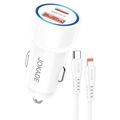 Alimentatore caricabatterie da auto USB/Type-c con cavo Lightning 90W 20V/3A bianco JH048