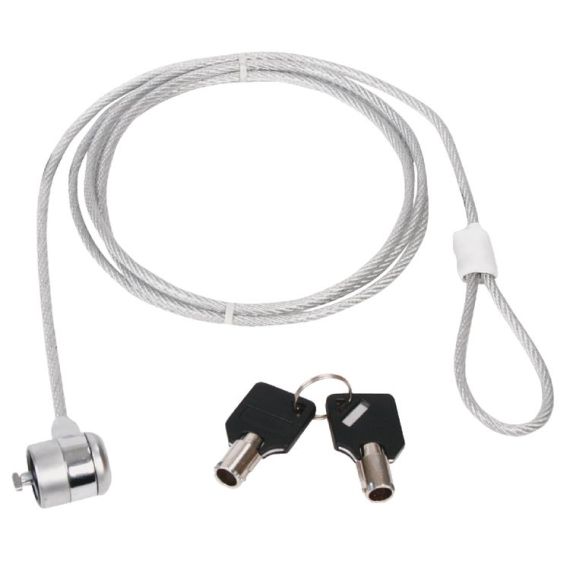 Con questo robusto cavo con blocco antifurto, proteggere tutti i dispositivi con lo slot di sicurezza integrato come i notebook, proiettori, schermi LCD, ma anche i computer desktop. Il cavo da 1.8 metri di lunghezza ha un anello che permette di installare e fissare i dispositivi facilmente. Il cavo di sicurezza viene fornito con 2 chiavi identiche.